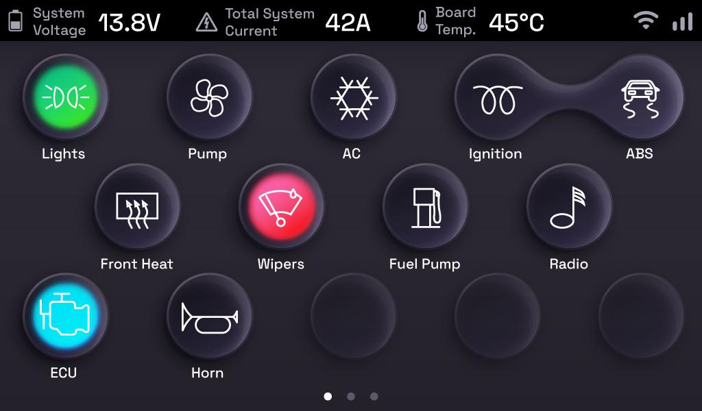 14 × high-side smart switches (each 15 A continuous / 20 A for 5 s)